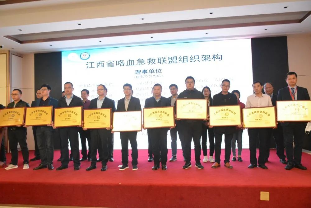 在“江西省咯血急救聯(lián)盟”啟動儀式上,江西省保健學(xué)會理事長李秋根、中華醫(yī)學(xué)會放射學(xué)分會介入放射學(xué)專業(yè)委員會副主任委員向華、江西省胸科醫(yī)院醫(yī)院院長許斌等向首批30家聯(lián)盟單位授牌??┭本嚷?lián)盟的成立是全省咯血急救向基層前移的標(biāo)志,對于聯(lián)盟單位間的密切交流、深度協(xié)作意義重大,將使全省大咯血急救達到同質(zhì)化,整體水平更上新臺階。