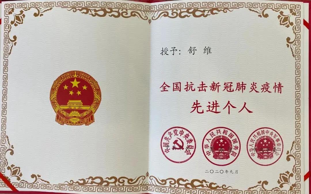 “獲得黨中央、國務(wù)院、中央軍委隆重表彰,心情非常激動!這次獲得國家授予的抗疫先進(jìn)個(gè)人榮譽(yù),深感榮幸和鼓勵(lì),這不僅是對我個(gè)人抗擊新冠肺炎疫情付出的認(rèn)可,更是對我省廣大醫(yī)務(wù)工作者和江西省胸科醫(yī)院全體干部職工的信任和肯定。本次戰(zhàn)‘疫’取得決定性成果,取決于以習(xí)近平同志為核心的黨中央堅(jiān)強(qiáng)領(lǐng)導(dǎo),取決于大家精誠團(tuán)結(jié),敢于斗爭、敢于勝利。只要我們時(shí)刻堅(jiān)持黨的領(lǐng)導(dǎo),堅(jiān)持人民至上、生命至上,充分發(fā)揮黨員干部的戰(zhàn)斗力和創(chuàng)造力,任何困難都壓不倒我們?!痹诒本┤嗣翊髸猛猓魇〉谌嗣襻t(yī)院、南昌大學(xué)附屬胸科醫(yī)院呼吸科黨支部書記、副主任醫(yī)師舒維手捧著沉甸甸的榮譽(yù)證書,激動地說道。