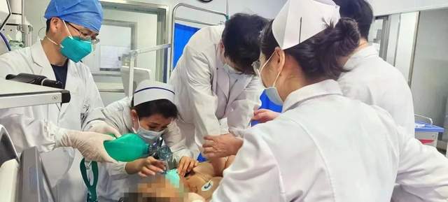 看到患者竇性心率恢復,大家終于松了一口氣,但仍然一刻也不敢停歇,醫(yī)生吳振波立即就地為患者行氣管插管,護士長黃穎使用吸痰器從氣管插管內(nèi)吸出大量黃膿痰,協(xié)助建立中心靜脈導管通道。