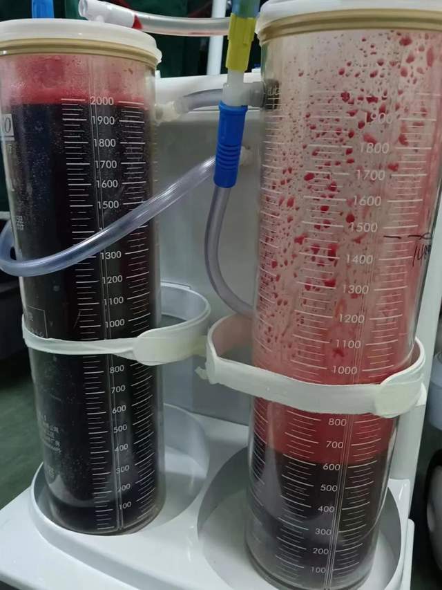 做好個人防護(hù)后,醫(yī)護(hù)人員在專用隔離手術(shù)間對患者實(shí)施胸腔鏡下左側(cè)胸腔止血加積血清除術(shù),發(fā)現(xiàn)胸腔積血約2600ML,血凝塊100ML,胸膜粘連帶血管斷裂出血。在團(tuán)隊的共同努力下,清除了胸腔積血并成功止血,經(jīng)過一個小時,手術(shù)順利結(jié)束,目前患者病情平穩(wěn)。